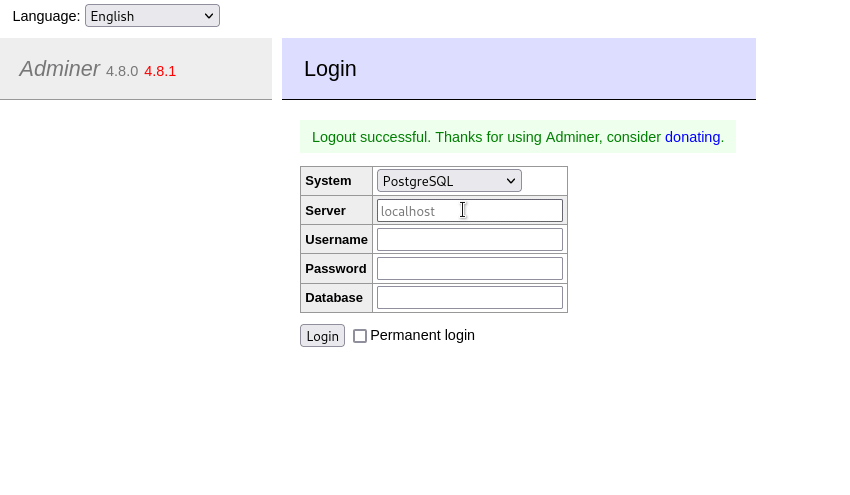https://adminer.openxcell.dev and this also requires SSO as an additional security layer, to limit access to Openxcell Employees and Developers only.