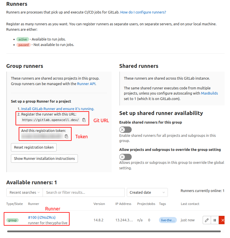 - Enter the registration token: ->> [ get token in Settings -> CI CD -> Runners -> this registration token: